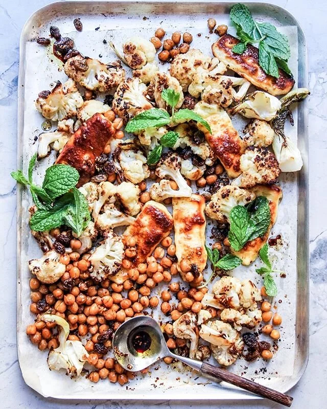 “Vegetarians! Carnivores! So when you roast tinned chickpeas they go all soft and chewy and dehydrated which completely transforms them and gives us a more substantial, nutty bite. And when you roast them with cauliflower and halloumi and dress it with my sour raisin balsamic it’s just the best weeknight dinner. This is how you feed your people during these long days at home and make them amazed by what a good cook you are.”